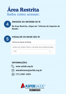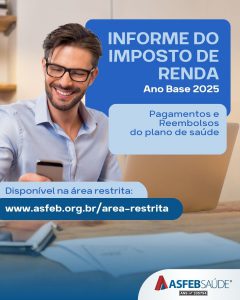 CENTRAL DE ATENDIMENTOInformamos que os demonstrativos de Pagamento e Reembolso do Plano de Saúde para fins de Declaração do Imposto de Renda 2026, ano base 2025, estão disponíveis na área restrita do site (www.asfeb.org.br/area-restrita/).