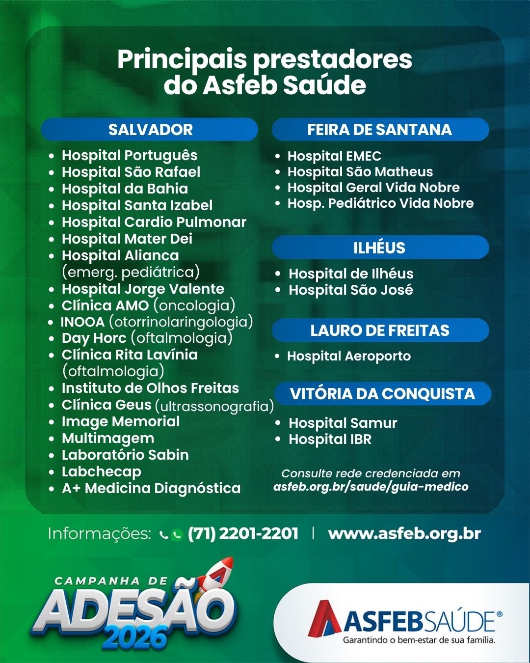 📢 Aproveite a Campanha de Adesão 2026 e entre agora para o Asfeb Saúde!